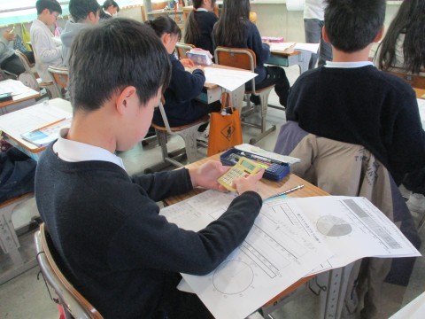 こちらも研究授業です。今日は帯グラフと円グラフを自分で書いてみました。