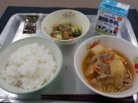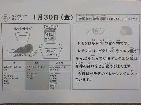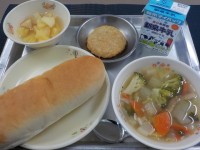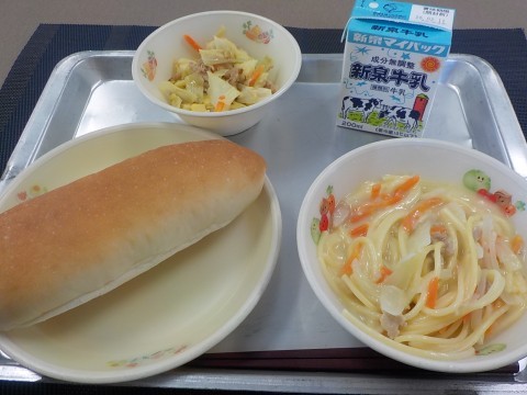 今日の献立は、クリームスパゲティ、ホットサラダ、ミニコッペパン、牛乳です。