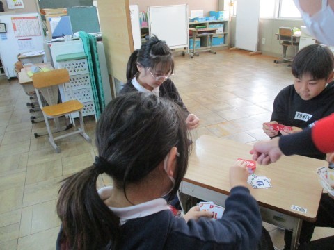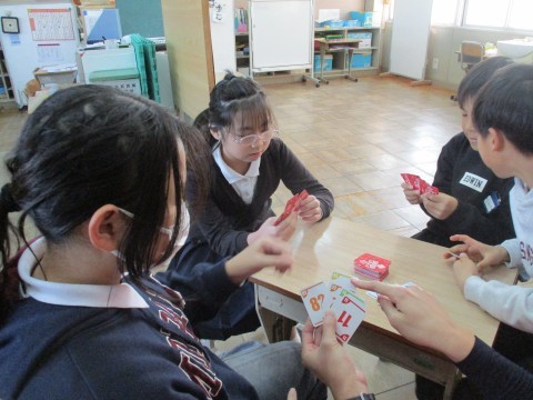 ひまわり教室の朝の会は,低学年と高学年にわかれて行っています。今日の高学年はそれぞれのスピーチのあと,カードゲームで交流する時間がありました。