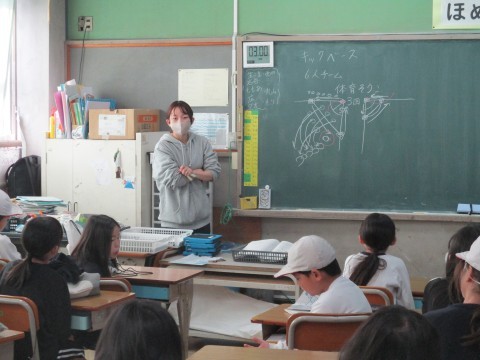 キックベースの学習がはじまりました。まず教室でルールの確認です。