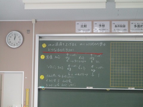 水の温度を上げると,とけるものの量が変わるのか,実験をしました。