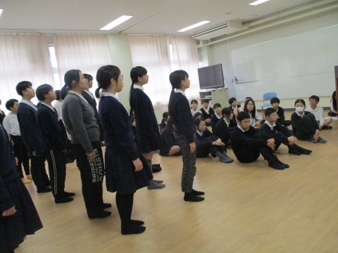 学年合同合唱の授業を新多目的室でおこないました。美しい歌声が新館にひびきました。