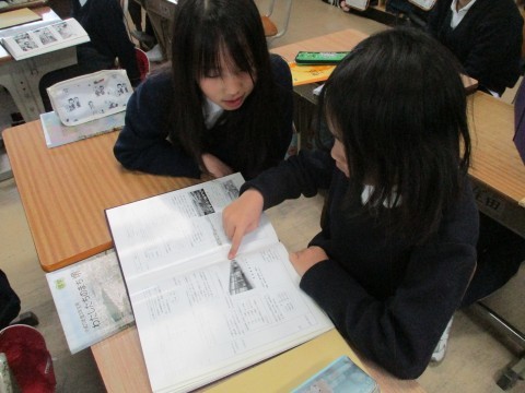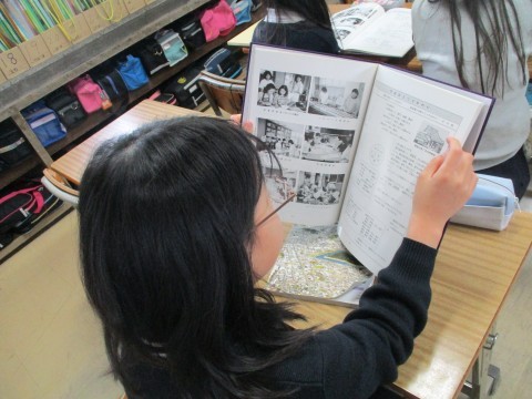 英彰小学校百年誌を見ながら,昔の様子について学びました。