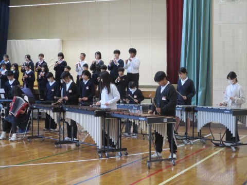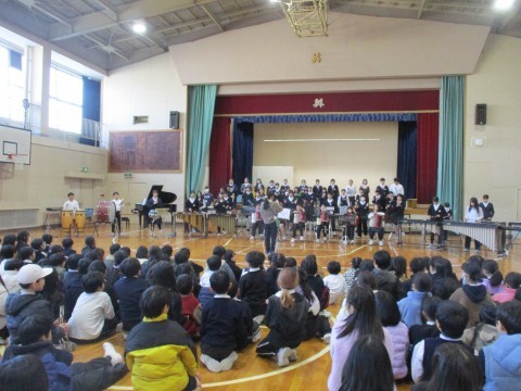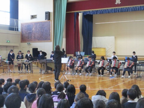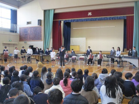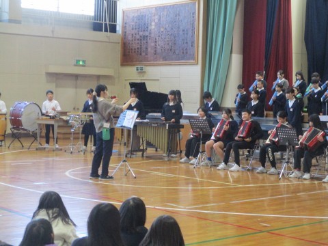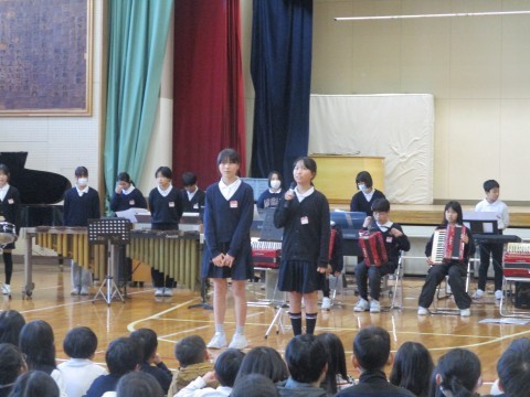 金曜日の参観のリハーサルを行いました。2・3・4年生に聴きに来てもらい,緊張の中で演奏しました。