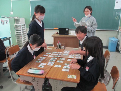 栄養士の先生による授業がありました。食育かるた,大切なことが詰まっています。