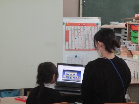 消防車についてタブレットをつかって学習しました。