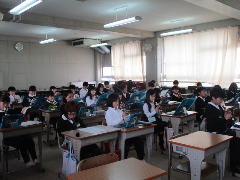 タブレットで指づかいを確認しながら「エーデルワイス」をリコーダーで吹きました。