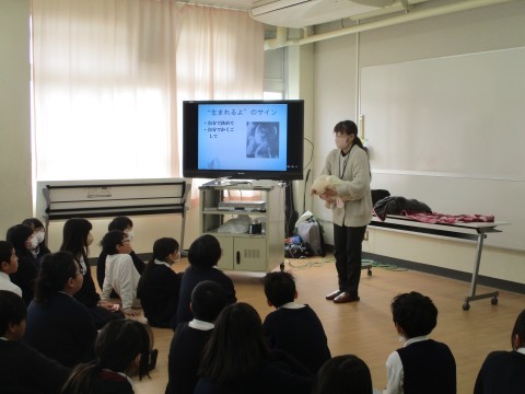 助産師さん,保健師さんによる「いのちの授業」がありました。生まれてくることは奇跡であり,自分を大切に・・というメッセージが込められています。命の誕生のお話に感動し,涙を流す子もいました。