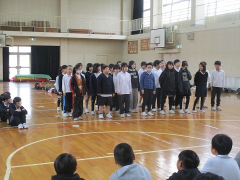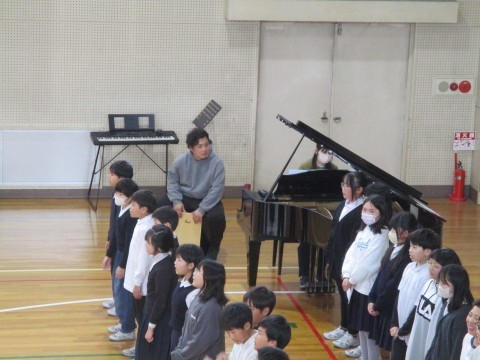4年生5年生合同で,音楽交流会を行いました。4年生はクラスごとの発表です。明るく楽しく歌うことができました。