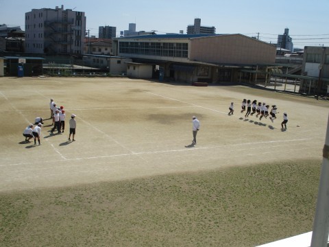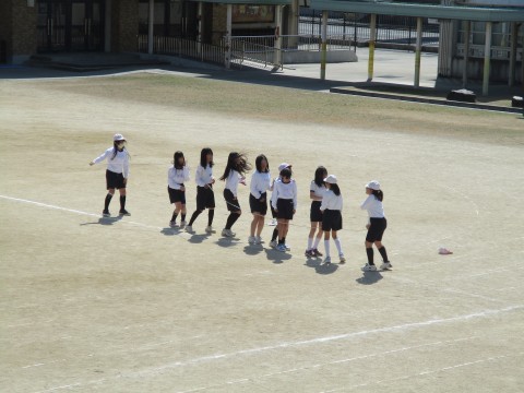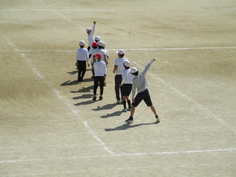 男女別に大縄を一斉にとびます。連続何回いけるかなー?