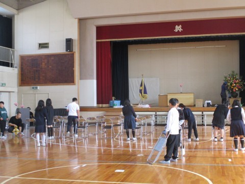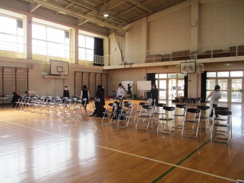 例年,卒業式の準備は5年生が担当します。ミリ単位で椅子をまっすぐそろえてならべ,校内各所をピッカピカにしてくれました。間もなく最高学年です。