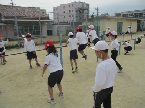 1・2組どちらも鉄棒を行いました。