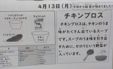 今日の給食 公開日 2026/04/13 更新日 2026/04/13 給食 今年度の給食が始まりました。メニューは黒糖パン,牛乳,チキンブロス,ツナとポテトのマヨネーズ風味焼きです。心待ちにしている人が多かったです。