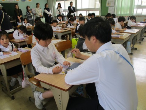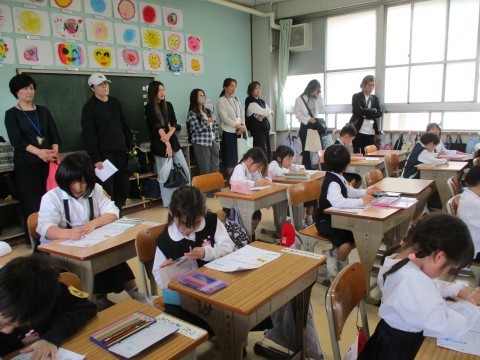 小学校はじめての参観日。たくさんのおうちの人が来てくれました。