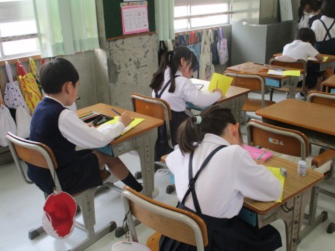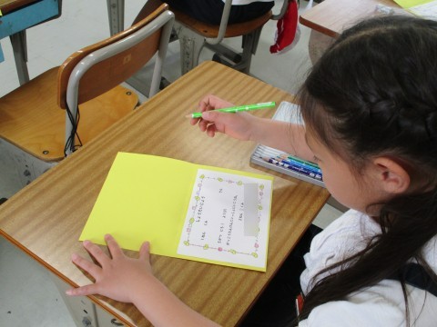 1年生を学校探検に案内するための招待状をつくりました。去年じぶんたちがやってもらったように,親切に1年生に教えてあげられるといいですね。