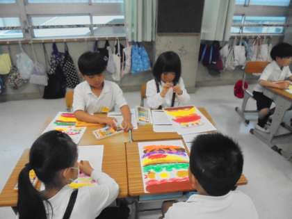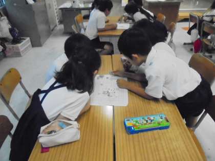 班の人とルールを守り、譲り合って「すごろくゲーム」をしていました。書いていることを読んで、進めていきます。図工では、どんどん大きくなる「ハンバーガー」の作製中でした。
