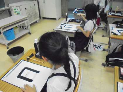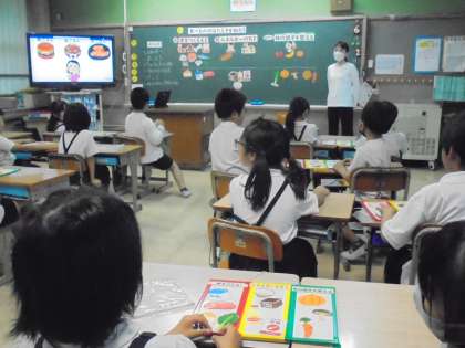 習字の練習です。「日」という漢字には、折れ・止めが入っています。筆を立てて集中して書いていました。総合では「食べ物のはたらきをしろう!」をめあてに、教育実習生の方が授業をしてくれました。