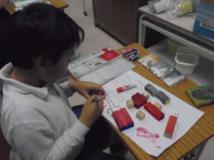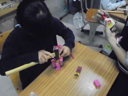 木とくぎを使って「トントンつないで」を作っていました。カブトムシや恐竜など、どんなのができるかな。