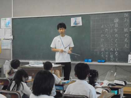 算数では、ものさしの1メモリの大きさを学習しました。「5つ分なら?」「10個ぶんなら?」と大きくしていきました。道徳では「おり紙の名人」というお話を読んで、自分のいいところを探してみました。