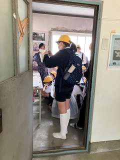 池田市立南池田小学校6年生のみなさんが、英彰小学校の「階段室」(のびの建物)を見学をしに来ました。戦争で焼け残った鉄筋の階段があり、2階には、戦争時の写真が掲示されてあります。それを見ながら、平和学習を行っていました。本校には、歴史的建物があります。本校児童も学んでいきます。