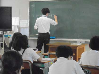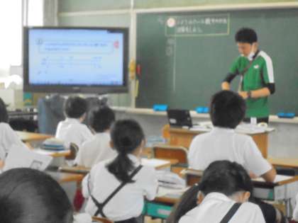 問題から、児童自身がめあてを考え、学びを進めていく授業を、実習生がしていました。堺スタンダードの形を、見通しを持って、実践しています。