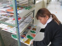 帰りのバスの中では、ビデオを観せてもらっています。静かです。学校へ帰って「ふりかえり」をします。