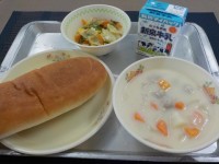 ハンバーグのソースには、にんじん、エリンギ、玉ねぎが入っていました。1年生の児童が「にんじん嫌いやけど、食べられた!」と嬉しそうに教えてくれました。苦手なものにもチャレンジしておいしく食べています。