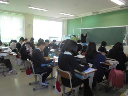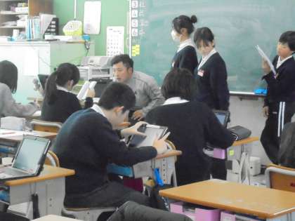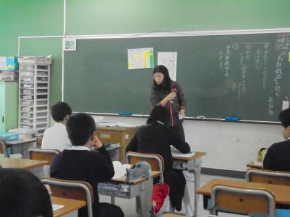総合では、卒業文集の作文を見てもらっています。また、国語では「鳥獣戯画」の特徴である絵をみながら、感想を発表したりしました。