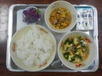 チヂミには特製ソースがかかっています。1年生の児童が「ギョーザみたいな味がする!」と感想を言ってくれました。