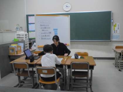 小さな「っ」やのばす音の確認をしていました。また、カタカナで丁寧に書くことも意識していました。