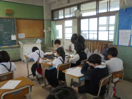 社会では「商業のさかんな地域」の学習です。さかんになった理由を地形から考えてみました。図工では「伝言板」を作ります。どんな形にするのか、設計図を作りました。