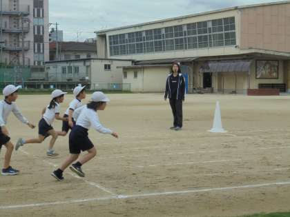 後ろ向きで走ったり、向き直って全速で走ったりしました。