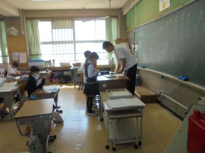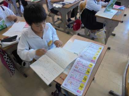 「音訓クイズ」を解いてました。教科書やドリルを使って調べながら、進めていました。