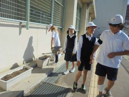 児童会の人たちが、自分たちで蒔いた「アサガオ」と「ヘチマ」の水やりをしていました。大きくなるのが楽しみです。