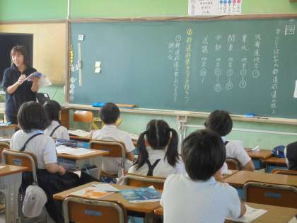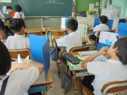 理科では「天気と1日の気温」のテストをしました。国語では「都道府県カルタ」を作ります。本やパソコンで都道府県の特徴を調べて、カードを作っていきます。