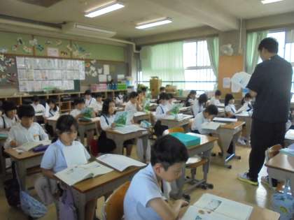 先生が音読してくれました。わからない漢字には、この時にふりがなを付けておきます。また、レジネステストを返してもらいました。どれくらい、今までに習ったことが身についていたかな。