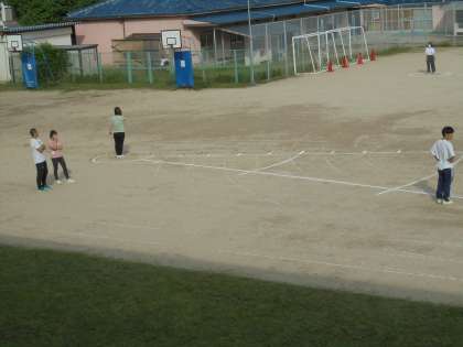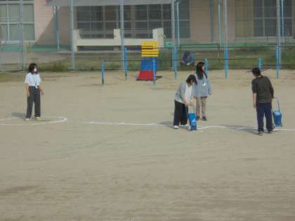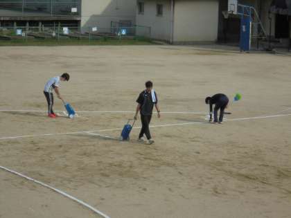明日は、スポーツテストのソフトボール投げがあります。先生たちは、準備をして明日に備えます。