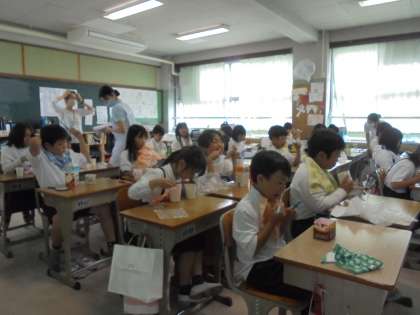 国語では、新出漢字を練習しました。また、歯をしっかり磨くために、歯ブラシの持ち方など、歯科衛生士の学生さんたちに習いました。