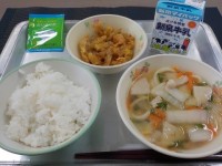 チリコンカンは、白いんげん豆が入っています。チリパウダーというスパイスが入っているので、少しスパイシーでした。子どもたちはミニパンといっしょに、おいしそうに食べていましたよ。