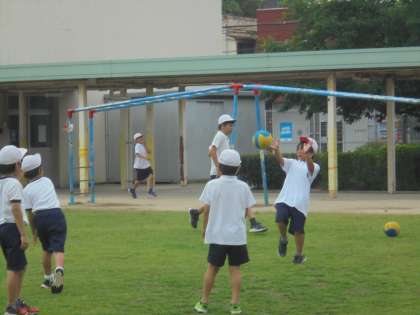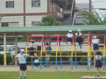 曇り空で湿気を感じますが、雨は降っていなかったので、外で遊ぶ姿が多く見られました。