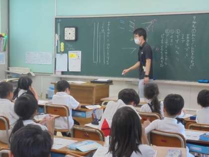 国語科では、「マ」の練習をしました。筆順を意識して書いていました。生活科では、1学期の振り返りをしていました。各教科をがんばったかどうか、何をがんばったかを書ける人は、書いていました。
