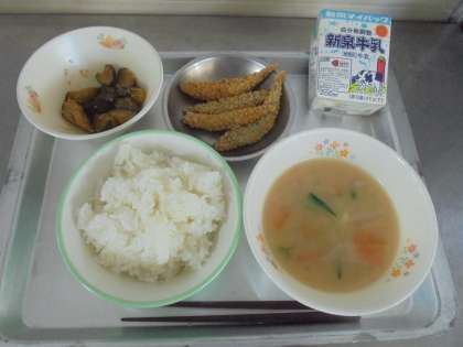 きゅうりは、水分が多い野菜です。今日は砂糖・酢・しょうゆ・ごま油で味付けしました。冷たくして食べたいところですが、給食は冷やすことができません。温かいきゅうりでしたが、1年生の児童が「ピクルスみたいな味でおいしかった」と感想を聞かせてくれました。