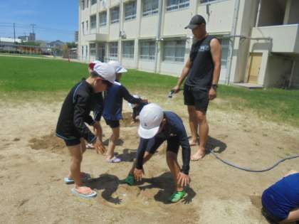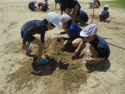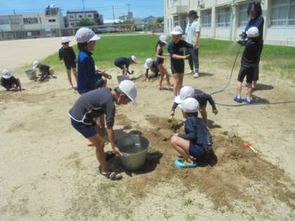 どろんこ遊びをしました。水を運んだり、水路を作ったりしていました。想像力が豊かです!