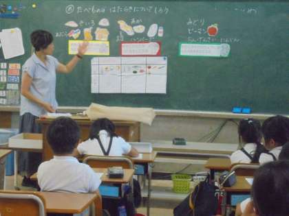 総合では、栄養教諭から、食べ物の栄養について教えてもらいました。「風の強さと車が動く距離」の予想をたてていました。今までの生活の中から知っていることをつなげて発表していました。
