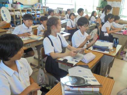 音楽では「いろんな木の実」の楽譜についている「繰り返し」のマークについて、教えてもらっていました。理科では「夏の夜空」の星について、星座版を使って確認していました。