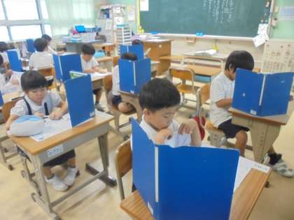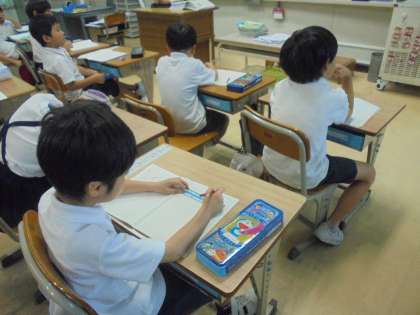 算数では「100マスけいさん」の仕方を習っていました。国語では「くじらぐも」のテストをしていました。