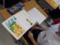 国語は,教科書にのっている漢字やカタカナの言葉を使って文を作る練習をしています。...