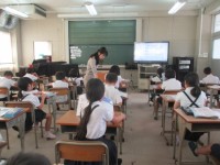 3時間目は1組、4時間目は2組で、それぞれお話をしてもらいました。 クイズに答...