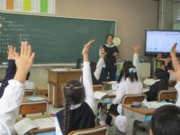 3時間目は1組、4時間目は2組で、それぞれお話をしてもらいました。 クイズに答...