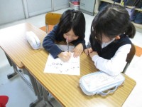 1組では,算数の「はこの形」を実際の箱を触りながら勉強していました。2組では,国...